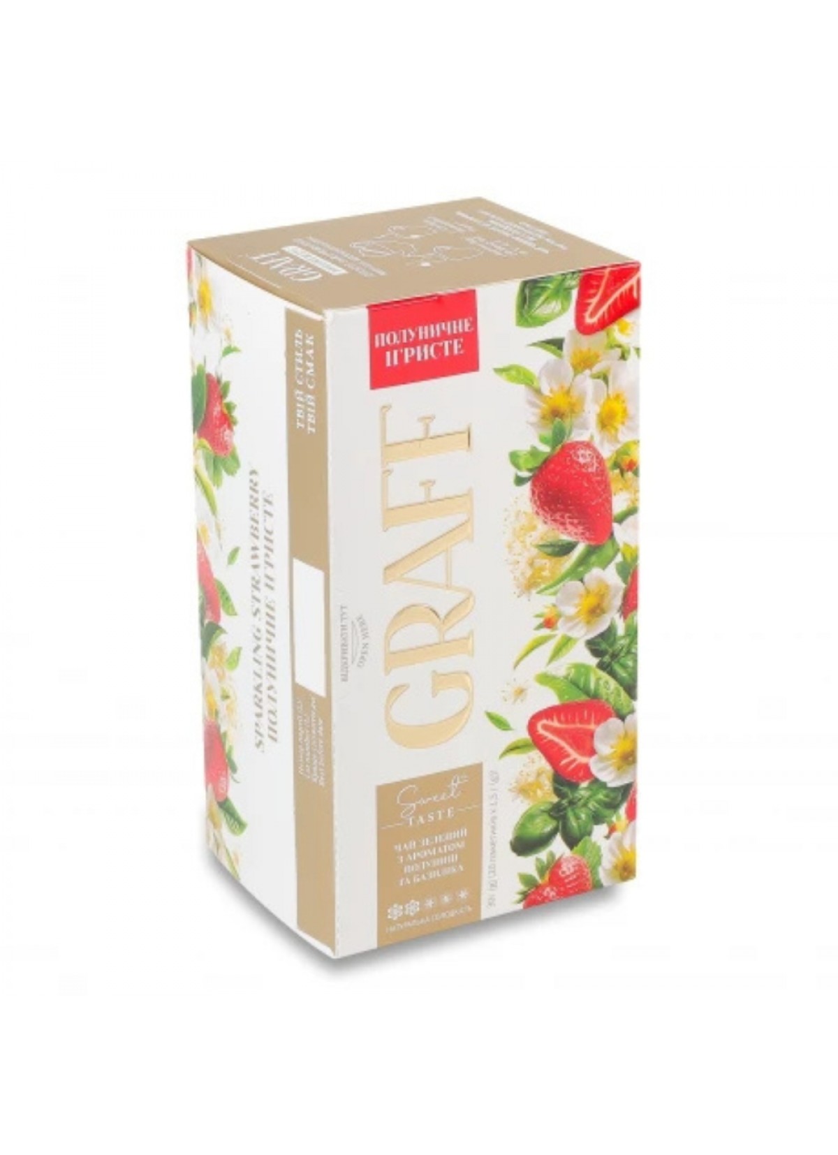 Чай зелений байховий з ароматом полуниці та базиліка з натуральним підсолоджувачем Полуничне ігристе Graff