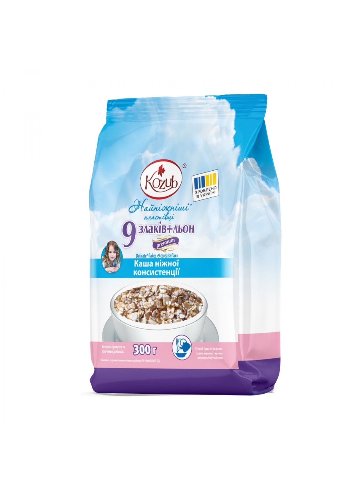 Пластівці Найніжніші* 9 злаків+льон Premium Kozub 300 г