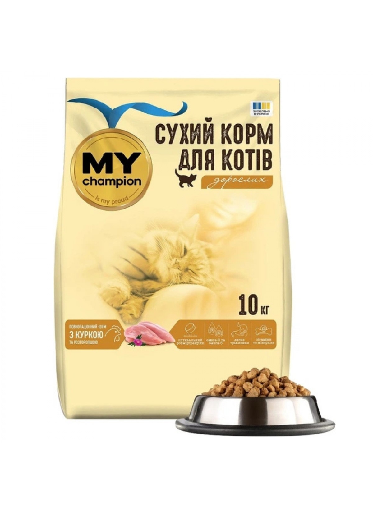 Мій чемпіон Повнораціонний сухий корм для котів з куркою та розторопшою 10 кг