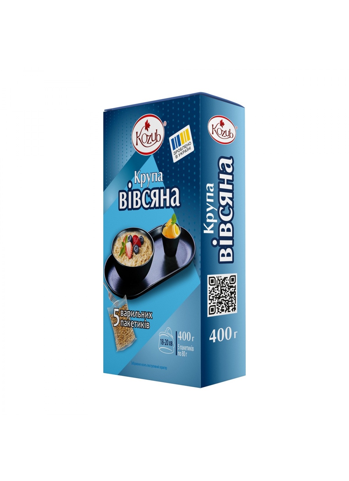 Крупа вівсяна неподрібнена в/с у варильних пакетиках, 5 шт. по 80 г, коробка 0,4 кг