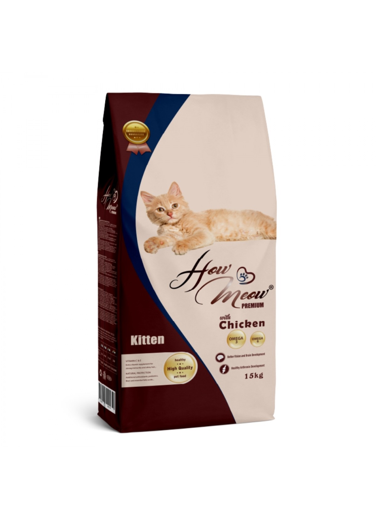 Повнораціонний корм для кошенят How Meow Adult Kitten з куркою 15 кг