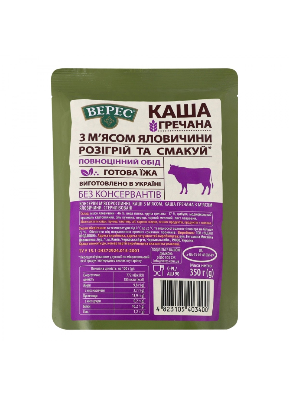 • Каша гречана з м`ясом яловичини Верес 350 г