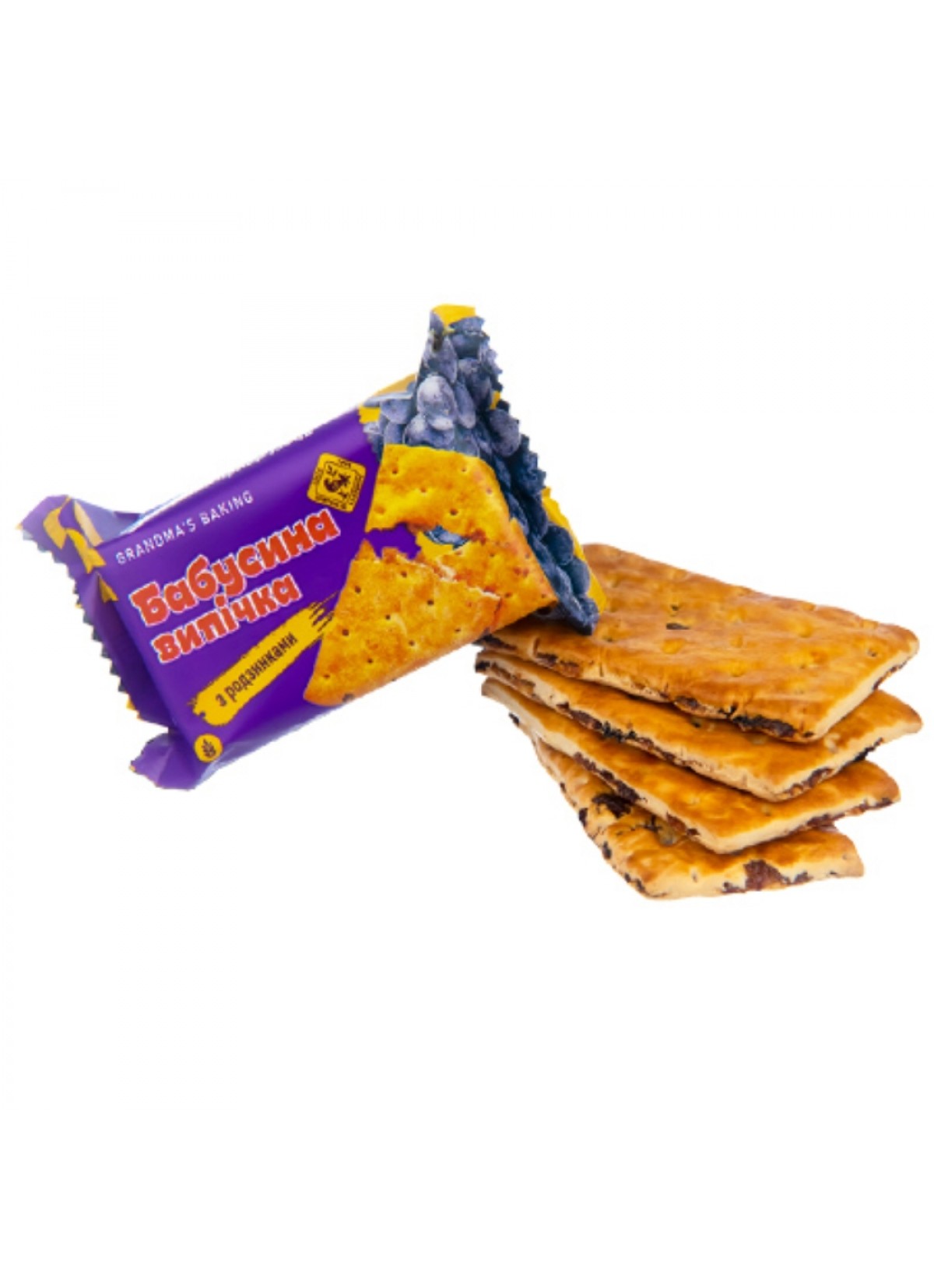Состав: Борошно пшеничне вищого гатунку 50.4%, родзинки 32%, жир шортенінг (олії та жири рослинні рафіновані вибілені дезодоровані: олія пальмоядрова та її фракції в змінних пропорціях, емульгатори (Е433, Е471), цукор, молочна) харчова, яєчний порошок, розпушувачі: гідрокарбонат амонію, гідрокарбонат натрію, ароматизатор ваніль, антиоксидант піросульфіт натрію (містить консервант двоокис сірки та сульфіти), регулятор кислотності кислота молочна.