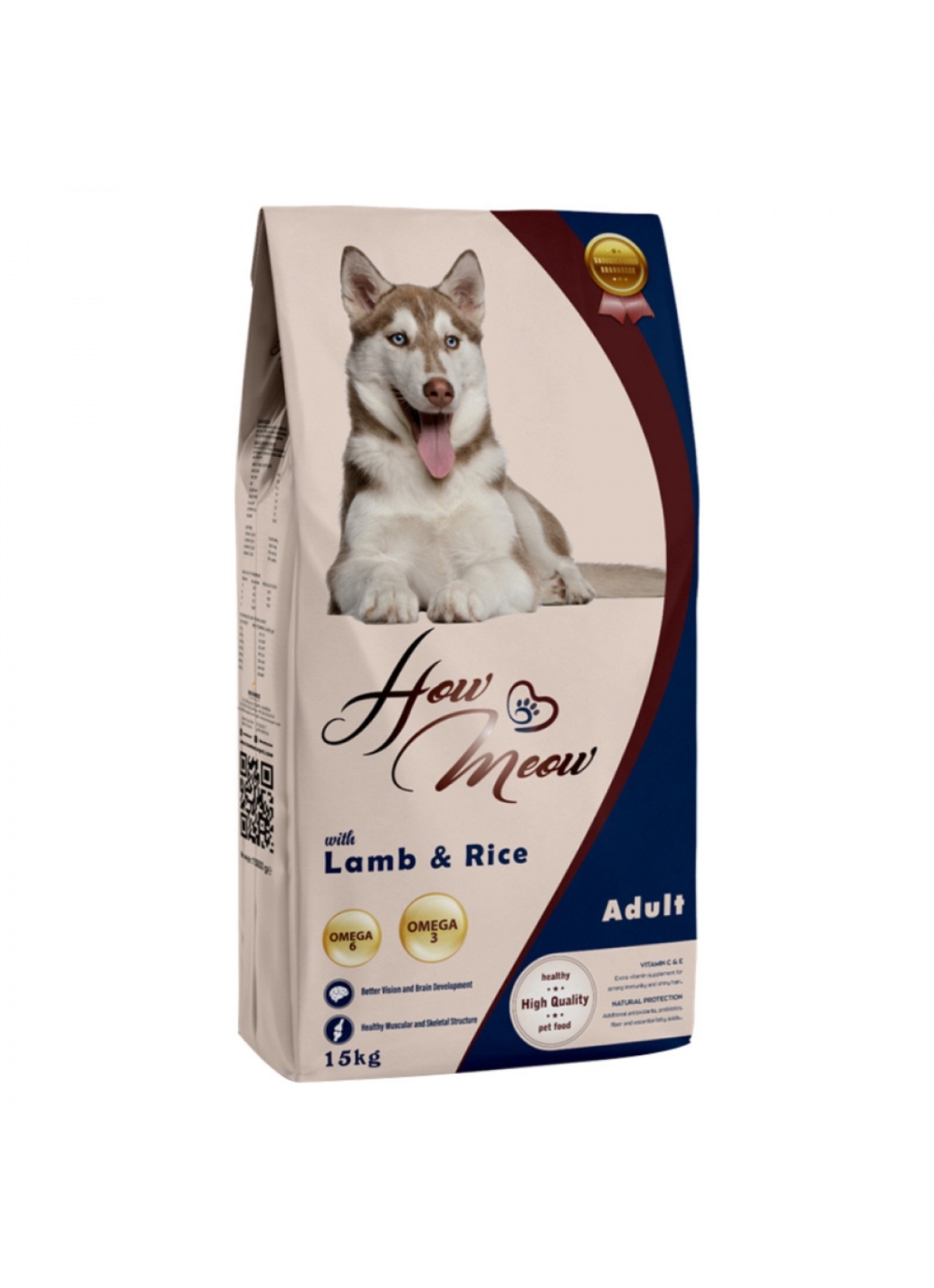 How Meow Dog Adult Повнораціонний корм для дорослих собак з ягням та рисом 15 кг