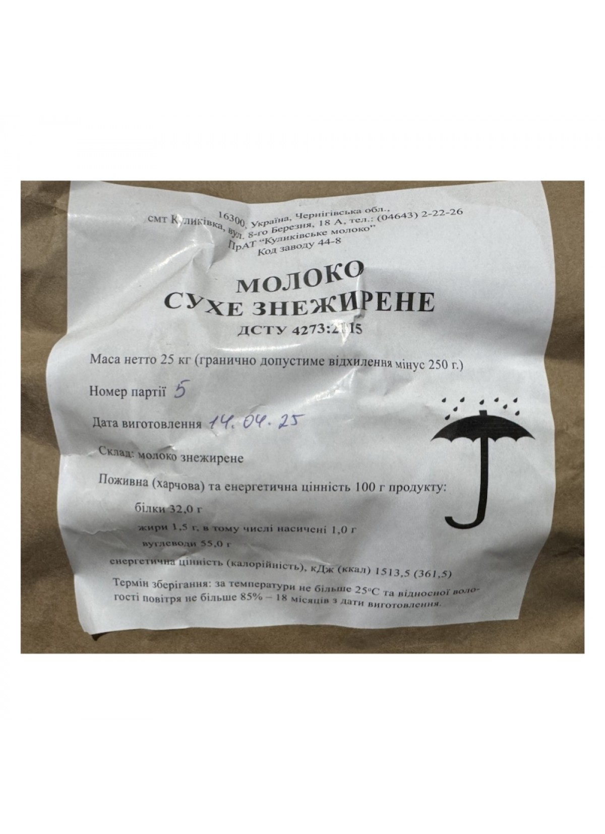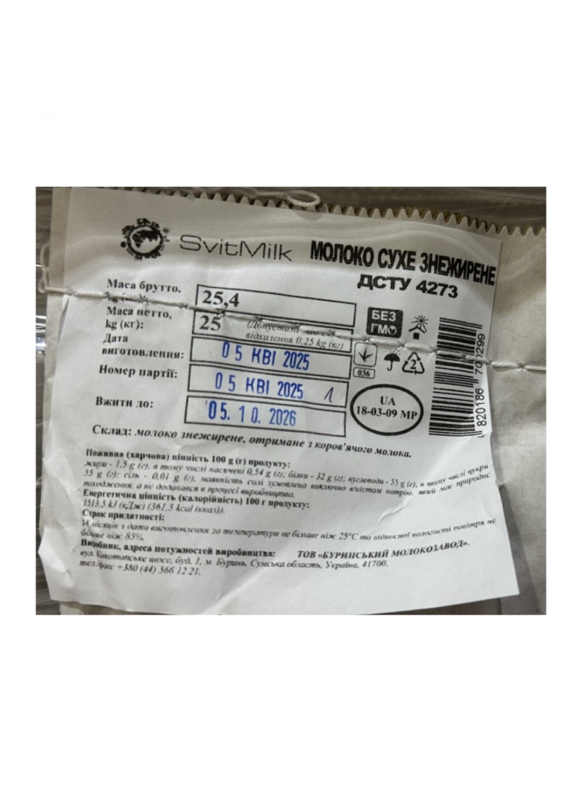 Производитель: – ООО «БУРИНСЬКИЙ МОЛОКОЗАВОД» – ЧАО "Куликівське молоко"