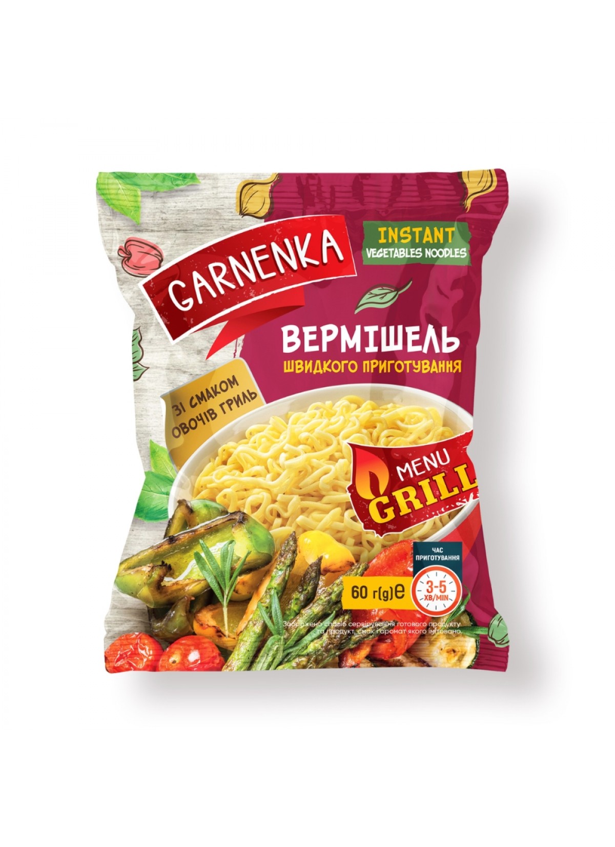 Вермішель швидкого приготування зі смаком овочів гриль Garnenka 60 г